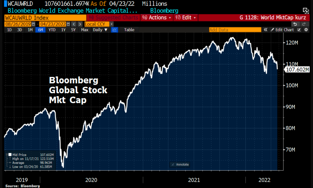 Biểu đồ vốn hóa thị trường chứng khoán toàn cầu của Bloomberg. Nguồn: Holger Zschaepitz/Twitter