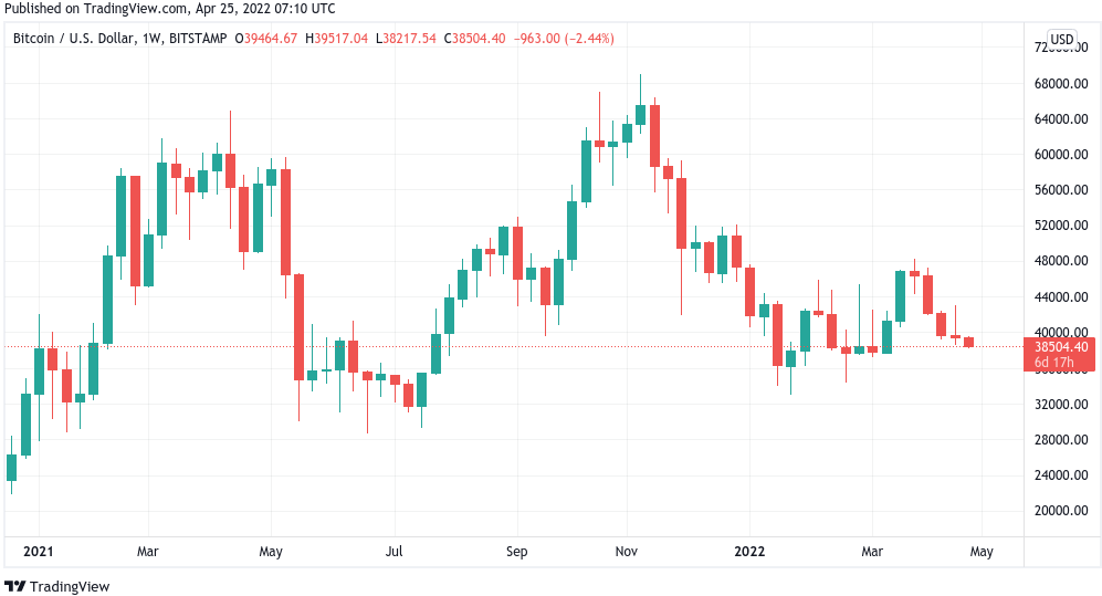 Dẫu vậy, dữ liệu từ Cointelegraph Markets Pro và TradingView chỉ ra rằng hiện có bốn cây nến đỏ liên tiếp trên biểu đồ hàng tuần, điều mà Bitcoin ghi nhận lần cuối kể từ tháng 6/2020.