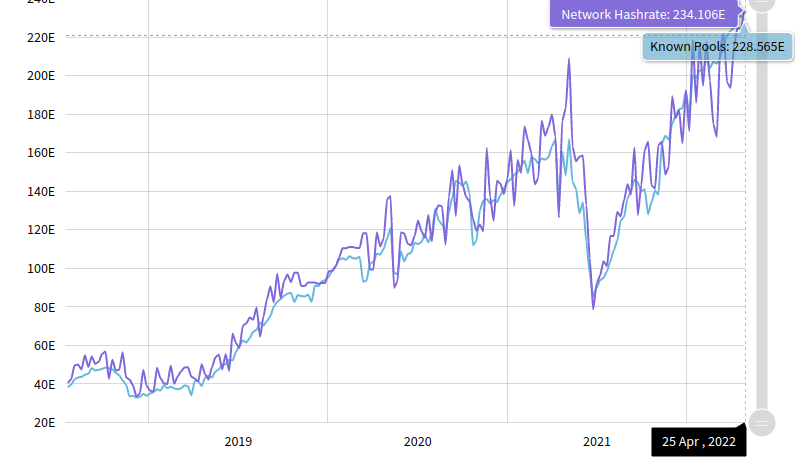 Các ước tính được đưa ra khác nhau tùy theo nguồn, nhưng dữ liệu thô từ MiningPoolStats nhấn mạnh xu hướng “chỉ tăng” khi nói đến tỷ lệ băm – một yếu tố kích hoạt chính khiến một số người cho rằng theo đó hiệu suất giá sẽ tăng.